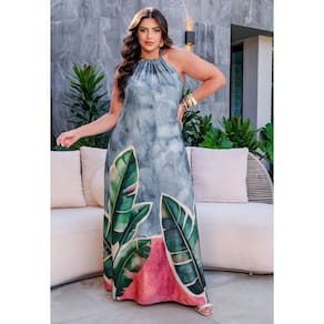 Especificações do Produto Nome do Produto: Vestido Plus Size Longo Estampa Barrada com Amarração no OmbroModelagem: Longa, ampla e fluidaDetalhes: Estampa barrada tropical | Amarração no ombro | Forro internoDecote: Ajustável com franzidoComprimento: LongoTecido: Viscose leve e frescaComposição: