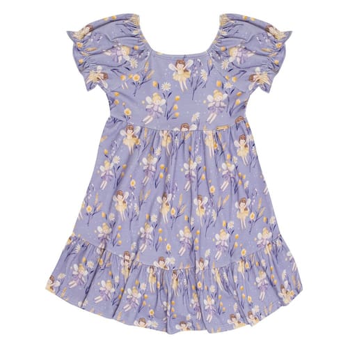 Fofura e conforto para o guarda-roupa das pequenas! Aposte neste vestido confeccionado em cotton leve na cor digital lavanda, com estampa de fadinha em toda peça, decote arredondado e mangas com elástico para maior conforto e delicadeza ao vestir. Ideal para um passeio tranquilo com a vovó.