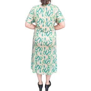 O Vestido Rodher Estampado Folhas Plus Size traz a leveza da natureza para o seu guarda-roupa com uma estampa de folhas moderna e sofisticada.