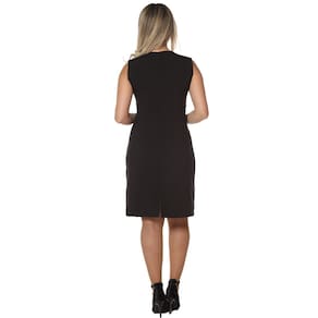 O vestido social executivo feminino sem manga é confeccionado no tecido premium Milano Plus, da renomada marca DOPTEX. Com composição de 74% poliéster, 22% viscose e 4% elastano, esse tecido encorpado e estruturado garante um caimento elegante, ideal para ambientes formais e profissionais.
