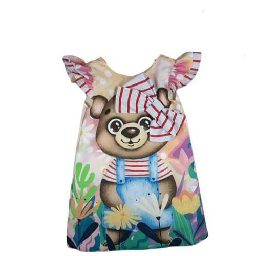 Vestido em crepe.Acompanha máscara e arco de cabelo.Super confortável com estampas modernas e perfeitas para todas as ocasiões. As peças possuem um aroma maravilhoso infantil e antialérgico, prezando maciez e conforto para as crianças.