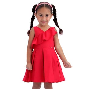 Vestido produzido na cor vermelha, ideal para usar nas festividades, alças largas, babadinho transpassado de um ombro até a altura abaixo das axilas, cinturado, saia com pregas largas, bem rodadinho, nas costas um espetáculo de recorte e um maravilhoso laço tamanho médio, forrado com failete.Já imagina sua criança nele.Apaixonante !100% PoliésterInformações: - Não Deixar de molho.- Lavar do avesso.- Não esfregar sobre o aplique e ou bordado.- Secar em varal.- Não passar ferro sobre o aplique e ou bordado.- Retirar os acessórios para lavar