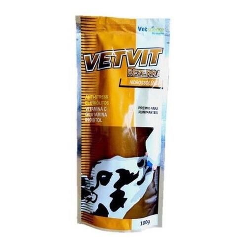 VETVIT BEZERRA é um produto a base de aminoácidos, vitaminas e eletrólitos, indicado para a suplementação de animais que se encontram em situações de estresse ou outros estados que necessitem suplementação, Ex.: desidratação, manejo intenso, desmama, vacinações, viagens, alta taxa de lotação, transferência de alojamentos, animais convalescentes, períodos com temperaturas extremas (frio ou calor) altos desafios.