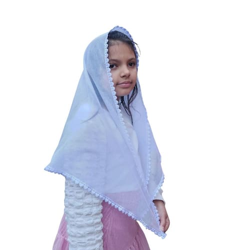 Véu CCB Coração Renda Estreita Juvenil - Formato: Retangular - Tradicional - Juvenil