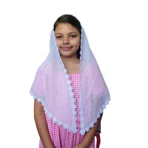 Confeccionado com Filó Verona (75% algodão e 25% poliéster) e Renda Guipir (100% poliéster).