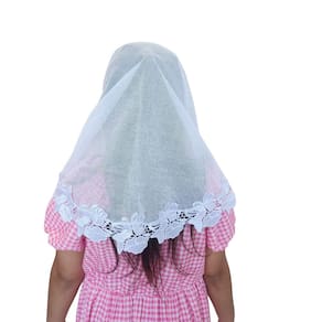 Confeccionado com Filó Verona (75% algodão e 25% poliéster) e Renda Guipir (100% poliéster).