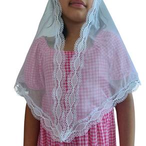 Confeccionado com Filó Verona (75% algodão e 25% poliéster) e Renda Guipir (100% poliéster).