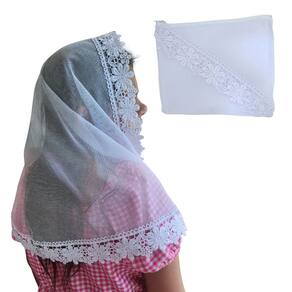 Confeccionado com Filó Verona (75% algodão e 25% poliéster) e Renda Guipir (100% poliéster).