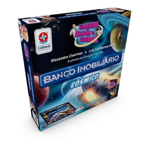 Por meio dos personagens Jor-El e Ana, os astrônomos brasileiros Luís Guilherme Haun e Alexandre Cherman convidam leitores de todas as idades a embarcarem uma emocionante viagem pelo espaço sideral, apresentando o que há de mais interessante e atual sobre planetas, estrelas, asteroides, nebulosas, planetas-anões e muito mais. Essa viagem imaginária, ilustrada pelo talentoso Douglas Franchin, proporciona uma experiência de leitura que pode levar a família a uma diversão infinita: o jogo Banco Cósmico, inspirado no tradicional Banco Imobiliário. Só que nesse jogo de tabuleiro, em vez de imóveis, os títulos de propriedade são astros, os piões são naves e as casas e os hotéis são substituídos por módulos científicos, módulos de sobrevivência e estações espaciais. Pronto para embarcar?