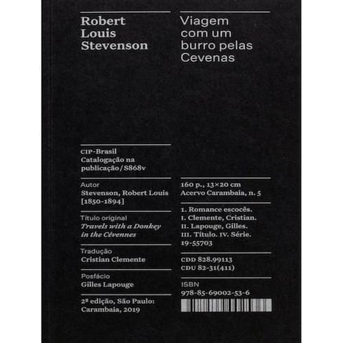 Viagem Com Um Burro Pelas Cevenas Foi O Segundo Livro Escrito Por Robert Louis Stevenson 18501894 Autor Que Se Tornaria Conhecido Por Obras Infantojuvenis Como A Ilha Do Tesouro E O Médico E O Monstro Tratase De Um Pitoresco Diário Narrando Atravessia Feita Pelo Autor Escocês Acompanhado De Uma Jumenta A Quem Chama De Modestine Pela Cadeia Montanhosa Das Cevenas No Sul Da Françaa Aventura Durou Doze Dias De 22 De Setembro Quando Stevenson Partiu Do Vilarejo De Le Monastier Com A Burrica E Um Saco De Dormir A 3 De Outubro De 1878 Quando Ele Chega A Seu Destino Final A Cidade De Alais Com Fina Ironia O Autor Relata Essa Trajetória Ritmada Sobretudo Pelo Humor Da Teimosa Modestine Que Ora Empaca Ora Decide Sozinha A Trilha A Seguir Cruza Vilarejos Carregados De História Cenários De Batalhas Das Guerras Protestantes Do Início Do Século Xviii Dorme Em Albergues Ou Até Numa Abadia Mas Sente Que Tem A Mais Hospitaleira Das Recepções Quando Passa A Noite Sob As Estrelas No Que Chama De Estalagem Verdeinédita No Brasil A Obra Ganha Edição Especial Da Carambaia O Volume É Revestido Por Um Material Que Simula A Pele De Um Burro Buscando Aproximar O Leitor Da Experiência Narrada Internamente A Disposição Do Texto Alinhado Apenas Pelas Margens Sem Quebra De Parágrafos Recria O Universo Visual Do Percurso Fazendo Com Que Se Percorra As Páginas Do Livro Como Quem Segue Uma Trilha Pontuada Por Curvas Subidas Descidas Estreitos Planícies O L Marca: CARAMBAIA ACERVO