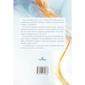 Este maravilhoso livro tem o objetivo de ajudar pessoas a resolverem suas próprias dúvidas e conflitos no campo da afetividade e sexualidade. Os autores abordam questões essenciais sobre relacionamentos entre parceiros amorosos e entre membros das famílias, bem como trazem o papel da espiritualidade e da reencarnação no campo do sexo e do amor. Eles elucidam temas sensíveis como leis da afetividade, cárceres afetivos, síndromes sexuais, diferenças entre sexo biológico, identidade de gênero, expressão de gênero, orientação sexual, e muitos outros. As respostas que você procura estão nas páginas deste livro de forma clara, leve e consistente.