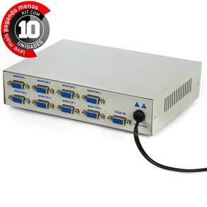 Vídeo Splitter 1x8 - Distribuidor De Sinal Vga - Kit Com 10 O Spliter VGA é ideal para a transmissão de imagem para oito telas ao mesmo tempo. Com o distribuidor de sinal VGA você não perde a qualidade de imagem. Pode ser também em projetores e televisores com entrada VGA. Não perca tempo e leve o melhor para seus shows ou eventos Curta o melhor da tecnologia com os produtos da Cirilo Cabos Características Gerais Modelo: VGA Splitter KR108 Cor: Preto Peso: 0,600 g : 3 meses Conteúdo da embalagem: 01 Distribuidor de Sinal VGA Marca: Não Informado