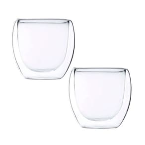 Os Copos de Vidro Parede Dupla para Chá e Café são uma adição elegante para sua coleção de utensílios de cozinha. Com medidas de 3,8cm x 6cm x 6,5cm, eles são perfeitos para desfrutar de uma bebida quente ou fria a qualquer momento.
