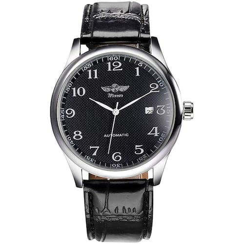 Procurando um presente de Natal incrível para seu marido / pai / sogro / namorado / professor ...? Não procure mais, este relógio VIGOROSO é um presente perfeito para o Natal / Aniversário / Aniversário / Dia dos Namorados e quaisquer dias significativos. Expresse com precisão seu amor. Este relógio também é uma boa escolha decorando você. MANUTENÇÃO PRECISA DO TEMPO: Movimento auto-sinuoso mecanial automático, fornece manutenção de tempo precisa e precisa. IMPERMEÁVEL PARA USO DIÁRIO: Levemente resistente à água NOTA:Somente respingo ou gotejamento resistentes, não adequados para chuveiro, natação e mergulho. Muito contato ou uso de água em temperatura extrema Quente ou Fria vai encurtar a vida útil do relógio.CONFORTO: A correia é macia e confortável e ecológica. DESIGN CASUAL DA MODA: Discagem preta com mão de relógio prateado, banda de relógio preto. Design analógico de display, banda de couro com a simplicidade do negócio casual. Parece muito simples e fashion. Adequado para todos os tipos de pessoas.