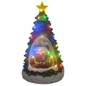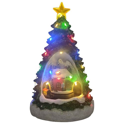 Mini Árvore de Natal com cenário Natalino Músical Iluminado com Estação de Trêm possuindo 22cm.