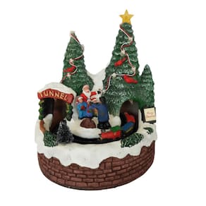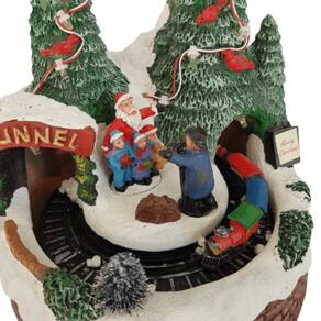 Vila decorativa de natal com trenzinho, ótima opção para sobrepor um móvel, junto a árvore de natal, naquele cantinho especial ou onde seu bom gosto mandar. Perfeito para seu ambiente e as crianças, huu irão ficar deslumbradas. Movimenta-se com 3 pilhas AA, e ao ligar, o trenzinho gira por dentro do túnel. A iluminação colorida com multi LEDs se dá no topo das árvores, detalhes que dão um destaque a mais em toda a peça e um charme ao seu ambiente. A base, a estrutura, os personagens e objetos são confeccionados em resina, material com maior resistência e rico em detalhes, traços das árvores, papai Noel, assim como a pintura com excelente acabamento. O mecanismo contém peças plásticas. Um encanto, incrível, digno de elogios!