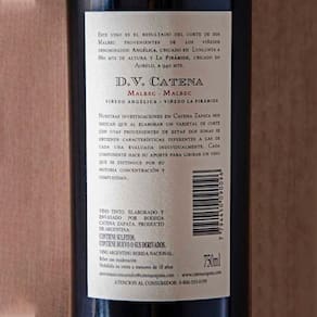 Mais uma estrela da nova linha premium de Catena Zapata, o DV Catena Malbec-Malbec , é uma mistura de uvas Malbec , resultado dos dois excelentes vinhedos utilizados na produção.