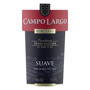 Vinho Campo Largo Tinto Suave. Com mais de 80 anos de tradição, é elaborado a partir de uvas Isabel e outras uvas cultivadas na Serra Gaúcha. Com sua cor vermelho-rubi, aroma de frutas maduras e sabor suave, é a escolha perfeita para acompanhar pratos leves, sobremesas e tortas. Ideal para ser servido entre 12 e 16C. Graduação Alcoólica 10%. Contém 750ml. Vinho Nacional.