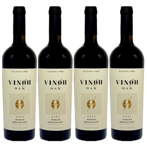 O Vinho Sem Álcool Tinto Seco Merlot Vinoh OAK - 750mL - Nacional - 04 Un une excelência nacional e tecnologia de desalcoolização, proporcionando uma experiência sofisticada e saudável. Feito com uvas Merlot brasileiras selecionadas, entrega aromas de frutas vermelhas maduras, sutis notas de chocolate e um toque amadeirado devido ao estágio em barricas de carvalho. Com textura aveludada, taninos macios e acidez equilibrada, seu perfil sensorial se assemelha ao de vinhos tradicionais, sendo uma opção perfeita para quem deseja saborear um vinho sem abrir mão da sofisticação. É livre de açúcar, glúten e álcool, o que o torna ideal para gestantes, motoristas, atletas e pessoas com restrições alimentares.