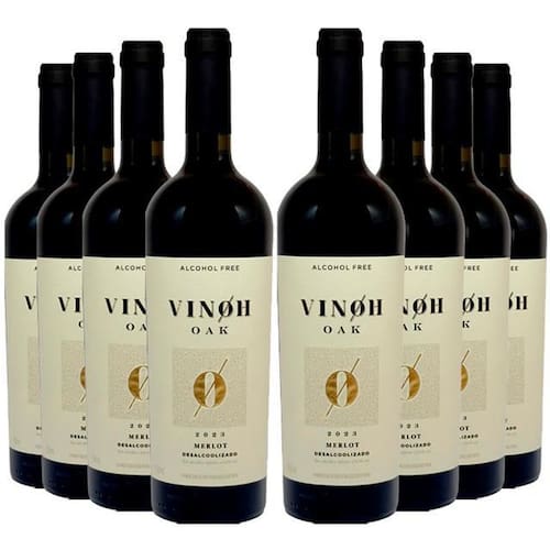 O Vinho Sem Álcool Tinto Seco Merlot Vinoh OAK - 750mL - Nacional - 08 Un é a união perfeita entre tradição e inovação, oferecendo uma experiência refinada e saudável. Produzido com uvas Merlot brasileiras selecionadas, passa por um processo de desalcoolização que mantém o perfil sensorial do vinho tinto tradicional, com aromas de frutas vermelhas maduras e notas elegantes de chocolate e carvalho, proporcionados por um breve estágio em barricas. Com textura aveludada, taninos macios e acidez equilibrada, entrega um frescor marcante e um retrogosto prolongado e sofisticado.