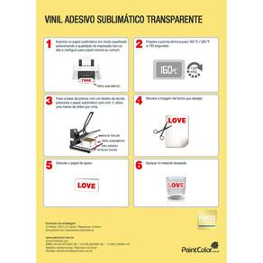 Agora você pode fazer adesivos, rótulos e lembrancinhas surpreendentes com Vinil Sublimático Adesivo Transparente. Sua cola é extremamente forte e resistente constituído por uma cobertura brilhosa. Imprima em um papel sublimático e transfira para o Vinil sublimático adesivo através da prensa térmica. Indicado para: Adesivos, rótulos e lembrancinhas. Características: Tamanho: 29,7×21,2cm Tecnologia: Vinil sublimático Material: Vinil (Transparente) Compatibilidade: Jato de tinta sublimático Gramatura: 200g/m² Espessura: 0,21 Origem: Nacional Quantidade: 100 folhas Garantia: Contra defeito de fabricação. Modo de uso: Leve à prensa térmica à 160 ºC por 120 segundos em pressão média.
