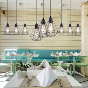 Vintage Metal Teto Pendentes Lâmpadas 3 Luzes E27 20cm Tipo: lâmpada de teto Estilo: vintage, retrô, industrial, geométrico, decoração. Tamanho: Abajur: diâmetro: 20 cm, altura: 20 cm Comprimento do cabo: 100 cm, o comprimento pode ser ajustase de montagem no teto: Diâmetro: 50cm, Altura: 2cm Opções de cor: Preto, Branco Tipo Opções: 1-Luz pendente de luz, Luz pendente de 3 luzes com base de montagem de 30cm, Luz pendente de 3 luzes com haste 50cm altura de montagemTensão: 110-240VPower: Max 60W por suporte de farol: E27Bulb: não incluídoLâmpada adequada: lâmpadas incandescentes, LED, CFL e halógenasLâmpada de abajur e tampa: IronAplicações: quarto, sala de estar, sala de jantar, cozinha, sala de estudo, loft, loja de café, bar, restaurante, escritório, hotel. ?Lustre de estilo nórdico simples?Estrutura simples, estilo retro, linhas elegantes. não só a iluminação, mas também a decoração da sua casa. ?Detalhes do tamanho da lâmpada? Tamanho do abajur da gaiola: diâmetro 20cm, altura 20cm; Cabo ajustável de 120cm; base do teto: Ø50cm, altura 2cm.?Lâmpada pendente com suporte de lâmpada E27?Lâmpada não incluída! Tensão: 110 - 240 V, Potência: Max 60 W cada lâmpada. Compatível: Lâmpada LED / Lâmpada de Economia de Energia / Halogênio. ?Lâmpada de teto requintada e elegante? A lâmpada é feita de ferro forjado, a superfície é de baixo carbono, proteção ambiental, não tóxica, não ferrugem, cor uniforme e durabilidade. . Estrutura de 1 ou 3 luzes pode enfatizar sua estética única.?Aplicar a lugares residenciais e comerciais?Esta lâmpada é uma boa iluminação e decoração para café, bar, clube, restaurante, hotel, sala de estar, quarto, cozinha, sala de jantar, home e, conservatório, despensa, entrada, varanda, garagem, terraço.