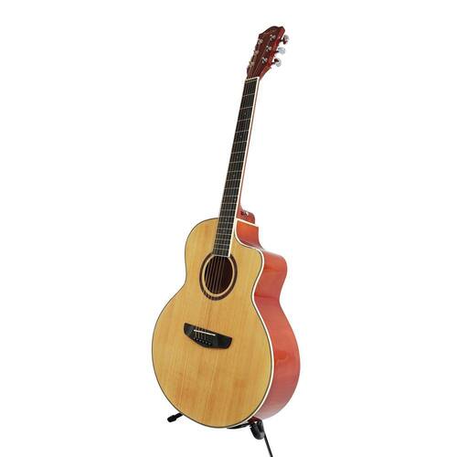 Fabricado com madeiras especialmente selecionadas para este tipo de instrumento, o Spruce no tampo sólido é uma madeira nobre e traz normalmente um médio e agudo mais brilhantes, é ideal para obter mais harmônicos, já o Poplar (madeira nobre encontrada no hemisfério norte) nas faixas laterais e fundo do violão é uma madeira bastante leve, com características sonoras similares ao Marupá que completam a caixa do violão de tamanho 40 modelo Folk, o braço fino facilitará a execução dos acorde e solos além do Cutway que lhe permitirá o acesso às casas mais altas do braço.