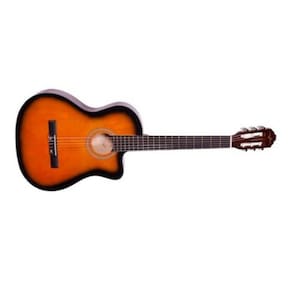 Violão Clássico Acústico Vogga Nylon Vca206 Nc Sunburst ESPECIFICAÇÕES TÉCNICAS Violão Clássico acústico com cutaway Tamanho: 39" 4/4 99 cm Tampo faixas e fundo em Linden Escala e cavalete em Dark Maple Tensor Bi-direcional Filetes ABS Tarraxas niqueladas com madrepérola Cores: Sunburst YS Ean: 7898477682606