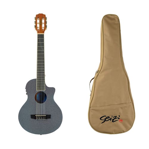 VIOLÃO ELÉTRICO NÁILON SEIZI FUN PANDA SPACE GREY SPARKLE (TAM: REDUZIDO) A linha de violões Seizi Fun Panda chegou para atender um público mais jovem que está iniciando a carreira musical ou também aquele músico que precisa de mobilidade e prefere utilizar instrumentos menores, mas que ao mesmo tempo busca um violão de qualidade e excelente relação custo-benefício, oferecendo características de sonoridade e acabamento nunca vistas num instrumento desse valor. Em formato Grand Concert, disponível em versões com encordoamento de nylon ou aço, ambas com a opção de acústico ou eletroacústico, o Violão Seizi Fun Panda vai ser o companheiro ideal nessa sua jornada musical. ESPECIFICAÇÕES - Madeira do Corpo: Sapele Laminado - Madeira do Braço: Okume - Tampo: Sapele Laminado - Acabamento: Gloss Sparkle - Encordoamento: Nylon Tensão Média - Escala: EcoWood com Friso - Trastes: 20 - Marcação: Lateral - Tarraxas: Abertas - Nut e Rastilho: Plástico - Pré-amp: Seizi com Equalizador de 3 Bandas, Afinador, Seletor de Fase e Indicador de Bateria - Medidas: 86 x 30 x 9,5 cm - Peso: 1,37 kg - Acompanha Bag OBS: em razão do constante processo de aprimoramento de design, qualidade e performance dos produtos e instrumentos e para sempre poder fazer uso dos melhores componentes e materiais, a Seizi reserva-se o direito de alterar as especificações sem aviso prévio. FORNECEDOR - ROYAL MUSIC