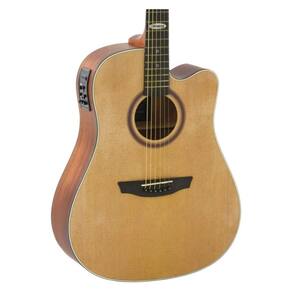 Violao eletroacustico folk com cutaway, ideal para quem toca em casa ou palcos pequenos. Tem acabamento fosco natural satin, timbre brilhante pelas cordas de aco, e captacao SE-60 com equalizador pre-amp completo para amplificacao.