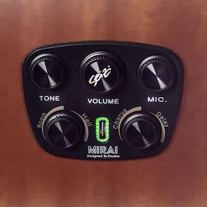A presença do tampo maciço em koa eleva a experiência sonora do Ryu Mirai. Essa característica proporciona