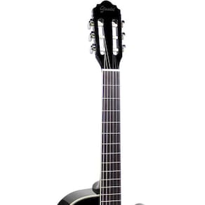 O tampo em Linden, uma madeira de excelente qualidade, contribui para o equilíbrio sonoro do violão. As tarraxas clássicas niqueladas garantem uma afinação precisa e estável, enquanto os trastes asseguram a precisão das notas, evitando trastejos indesejados.