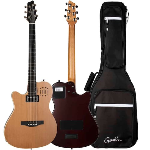 O A6 Ultra continua com os conceitos inovadores encontrados em todas os violões Godin série A, como combinar um som acústico plugado incrível com a sensação de um braço elétrico, juntamente com um design de corpo com câmara que praticamente elimina o feedback em ambientes ao vivo e altos. Essas características são verdadeiras e melhores do que nunca no A6 Ultra com o "Oomph!" adicionado e o tom completo de um humbucker Godin na posição do braço. Além disso, o transdutor sob a sela e as saídas duplas (acústica e elétrica) combinam-se para um som enorme com a ajuda de um pré-amplificador Godin personalizado, que é dublado especificamente para o A6 Ultra. Esta seção de pré-amplificador permite que o músico controle seu tom por meio de controles deslizantes para volume acústico, agudos, médios, equalização de graves e controles independentes para o volume do humbucker elétrico, agudos e graves. Seja conectando-se à mixagem acústica única ou por meio de ambas as saídas, controlar seu tom está na ponta dos dedos. E o A6 Ultra toca em todos os estilos de música, do jazz ao rock e ao country, sem mencionar que é uma ótima slide guitar para blues.