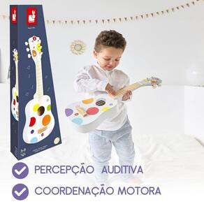 Violão Instrumento Brinquedo Musical Infantil Branco Janod Para os pequenos fãs de música, este é um violão infantil de madeira equipado com 6 cordas de metal para fazer de seu pequeno um verdadeiro roqueiro À partir dos 3 anos, os seus filhos poderão descobrir as diferentes sonoridades que esta guitarra pode oferecer e criar as suas próprias melodias. Muito leve e adaptado às mãos pequenas, será perfeito para acompanhar os mais pequenos que o aproveitarão para cantar à flor da pele Prepare-se para seu primeiro show em seu quarto. Brinquedos musicais permitem que as crianças despertem seus sentidos e ganhem confiança. A coleção Confetti possui uma gama completa de brinquedos de instrumentos musicais com designs lindos Os brinquedos musicais Confetti permitem que os músicos mais jovens descubram as alegrias da improvisação musical.