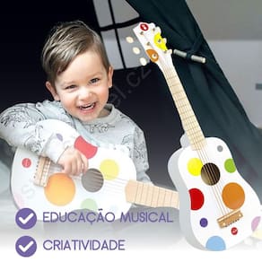 Violão Instrumento Brinquedo Musical Infantil Branco Janod Para os pequenos fãs de música, este é um violão infantil de madeira equipado com 6 cordas de metal para fazer de seu pequeno um verdadeiro roqueiro À partir dos 3 anos, os seus filhos poderão descobrir as diferentes sonoridades que esta guitarra pode oferecer e criar as suas próprias melodias. Muito leve e adaptado às mãos pequenas, será perfeito para acompanhar os mais pequenos que o aproveitarão para cantar à flor da pele Prepare-se para seu primeiro show em seu quarto. Brinquedos musicais permitem que as crianças despertem seus sentidos e ganhem confiança. A coleção Confetti possui uma gama completa de brinquedos de instrumentos musicais com designs lindos Os brinquedos musicais Confetti permitem que os músicos mais jovens descubram as alegrias da improvisação musical.