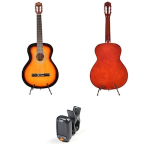 Marca - land Modelo - la39 Linha - water series Categoria - iniciante Estilo - cowboy Tamanho - 39 polegadas Tampo - linden Fundo - linden Escala - black wood Braço - mahogany Acabamento - verniz brilhante Cor - sunburst Cordas - nylon Cavalete - black wood Cutway - sim Trastes - 20 Marcaçao - bolinhas brancas