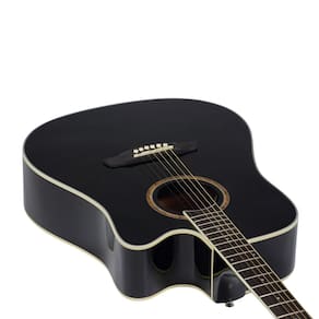 Violão modelo Folk construído com corpo em Agathis e tampo em Spruce, que conferem ao instrumento ótima sonoridade. Tem como pré-amplificador o SE-40, com controles de frequência e afinador. Características Gerais - Modelo: LE30C BK - Tipo: Violão Eletroacústico - Cor: Black (BK) - Acabamento: Brilhante - Formato do Corpo: Folk com Cutaway - Encordoamento: Aço - .011 / .048 - Número de Cordas: 6 - Madeira de Braço: Nato - Madeira de Tampo: Spruce Laminado - Madeira da Lateral: Agathis Laminado - Madeira de Fundo: Agathis Laminado - Cavalete: Blackwood - Escala: Blackwood - Tensor: Sim. Bilateral - Nut (Capo Traste): 43mm - Número de Trastes: 20 - Marcações: Dots - Tarraxas: Blindadas Cromadas - Escudo: N/A - Empunhadura / Mão: Destro - Pré: SE-40 - Captação: Piezo - Alimentação: Bateria 9V - Jack: P10 / XLR (Balanceada) - Controles do Pré: Volume, Grave, Médio, Agudo, Phase, Afinador e Check Bateria. Conteúdo da Embalagem: - 01 Violão Outras Informações: - Garantia: 03 meses Atenção: Imagens meramente ilustrativas. Referem-se apenas ao Violão. As descrições técnicas estão sujeitas à alteração sem aviso prévio. N/A: Não se aplica.