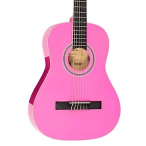 Infantil Rosa Pink- Violão clássico acústico infantil - Tamanho: 36 polegadas 3/4 / 92 cm - Indicação: crianças de 8 a 12 anos - Tampo, faixas e fundo em linden. - Escala e cavalete parafusado em dark maple. - Encordoamento em nylon. - Filetes em ABS. - Tarraxas douradas com madrepérola.