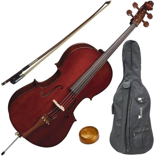 Violoncello Profissional Eagle CE 300 4/4 + Bag Extra Luxo Violoncello Eagle CE 300 4/4 Bag Extra Luxo O CE 300 é um violoncelo profissional de alta qualidade. Este modelo é construído artesanalmente e tem como principais atributos seu tampo de Spruce Maciço selecionado, lateral e fundo de Maple Maciço, seu arco profissional e seus outros componentes de Ébano selecionado. Todos estes detalhes lhe conferem uma sonoridade inigualável e um belíssimo visual. E para conservar e prolongar sua vida útil, o CE 300 é acompanhado por uma capa acolchoada de alta resistência.Importante: Devido aos constantes aprimoramentos em nossa linha, o instrumento acima demonstrado pode apresentar diferenças visuais e/ou de especificações técnicas quando comparado a versões anteriores, que ainda podem estar disponíveis em algumas lojas. Fotos e especificações técnicas apresentadas nesta página referem-se ao modelo mais recente.Especificações : Tampo: Top Abeto Maciço Solid Spruce Lateral e Fundo: Back & Side Maple Maciço Trabalhado Braço: Neck Maple Estandarte: Boxwood Cravelhas: Boxwood Micro Afinação: 4 Cordas Acabamento: Finish Envernizado Arco Profissional de Madeira com Crina Animal Genuína Proteção: Capa Extra Luxo Espelho: Ébano