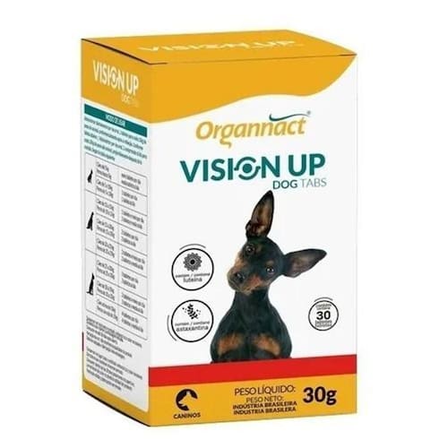 Vision Up Dog Tabs - 30 grVision Up Dog Tabs é um suplemento vitamínico mineral aminoácido com alta concentração de nutrientes antioxidantes indicado para cães adultos que necessitam de suporte nutricional. Pode ser utilizado em cães idosos, com alterações oftálmicas e/ou inflamatórias.