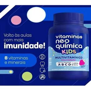 Vitaminas Kids Neo Quimica Imunidade Morango Zero Açúcar 60 Comprimidos Mastigáveis