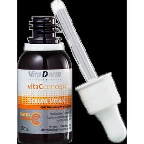 Vita Derm Vita C Concept Sérum de Linhas para todos os tipos de pele. vita Derm Vita C Concept promove hidratação, revitaliza a pele e uniformiza o tom. Sérum Vita Derm Vita C Concept traz fórmula enriquecida com vitamina C pura que promove luminosidade e radiância, 2 tipos de ácido hialurônico, que auxiliam na hidratação profunda, nanoresveratrol com potente ação antioxidante, e colágeno para auxiliar na melhora da firmeza e elasticidade da pele. Essa combinação de ativos garante regeneração da pele e uma poderosa ação de Linhas. Esse sérum possui textura suave e pode ser no rosto, mãos, colo e pescoço. Marca: Não Informado Ean: 07898560460784