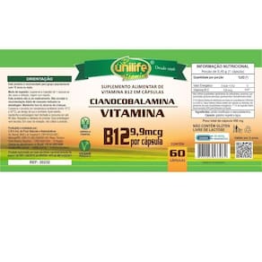 A vitamina B12, também conhecida como cianocobalamina, auxilia na formação de células vermelhas do sangue, funcionamento do sistema imune, metabolismo energético, metabolismo dos carboidratos, proteínas e gorduras, metabolismo da homocisteína e processo de divisão celular.