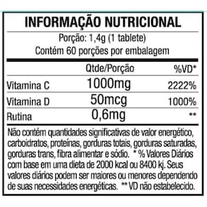 Vitamina C + Vitamina D3 60 Tabletes - Performance Composição do Anúncio
