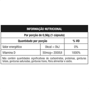 Com 60 cápsulas por frasco, é um suporte prático para manter níveis saudáveis de vitamina d, ajudando a alcançar um estilo de vida mais saudável e equilibrado. Características e ficha técnicatipo de suplemento: vitamina d3 em cápsulas quantidade: 60 cápsulas dosagem por cápsula: 2000ui de vitamina d3 suporte essencial para a saúde óssea, fortalecendo ossos e dentes. Contribui para a absorção de cálcio no organismo. Auxilia no funcionamento adequado do sistema imunológico.