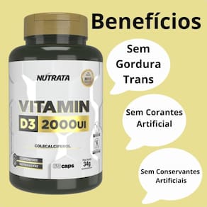 Promove a saúde muscular. Modo de consumo: 1 cápsula ao dia, preferencialmente com uma refeição, ou conforme orientação de um profissional de saúde. Ingredientes: vitamina d3 armazenamento: conservar em local seco e fresco, ao abrigo da luz solar direta. Indicação: indicado para pessoas com deficiência de vitamina d ou para manter níveis saudáveis dessa vitamina. Fabricante: nutrata indústria de alimentos ltda.