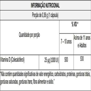 Cada unidade deste remédio contém ;2,00mg de colecalciferol (equivalente a 1.000UI) ;(princípio ativo), além dos excipientes enfatizados a seguir: