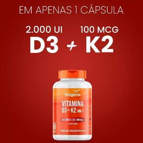Com uma potente dose de 2.000 ui de vitamina d3 e 100mcg de k2 mk7 afinal, por que o nosso produto se destaca Porque vai além do básico. Cada cápsula é uma fusão magistral da natureza e da ciência, criada para lhe proporcionar os máximos benefícios à saúde. A combinação da vitamina d3 e k2 não é apenas uma coincidência. Juntas, elas formam a dupla perfeita para a formação e manutenção de ossos e dentes saudáveis. Enquanto a vitamina d3 auxilia na absorção de cálcio e fósforo, a vitamina k garante que este cálcio seja direcionado para onde é realmente necessário, como seus ossos, e não para lugares indesejados, como artérias. Ingerir 1 cápsula ao dia, preferencialmente após refeição ou conforme orientação profissional.