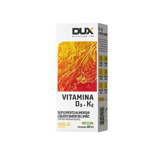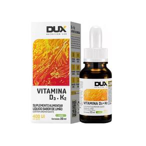 Vitamina D3 + K2 Sabor Limão 20ml Dux Nutrition A Vitamina D3 + K2 Sabor Limão da Dux Nutrition Lab é um suplemento desenvolvido para promover a saúde óssea e cardiovascular de forma prática e saborosa. Em frasco de 20ml, essa fórmula combina a Vitamina D3, essencial para a absorção de cálcio e fortalecimento dos ossos, com a Vitamina K2, que auxilia na correta distribuição do cálcio pelo organismo. O sabor limão traz um toque refrescante, tornando o consumo diário mais agradável. Ideal para quem busca complementar a alimentação e garantir níveis adequados dessas vitaminas, esse produto é especialmente benéfico para pessoas que passam muito tempo em ambientes fechados ou que têm dificuldade em obter vitamina D pela exposição solar.