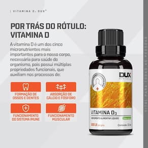 Vitamina d, em seu modo ativo forma d3 , de alta concentração, sabor menta, qualidade superior e fórmula limpa. Feita com tcm triglicerídeos de cadeia média e óleo de coco, um meio nobre para melhor absorção e aproveitamento pelo seu organismo. Máxima flexibilidade de consumo com até 1. 000% da ingestão diária recomendada. Esse produto não é um. Não exceder a recomendação diária de consumo indicada na embalagem. Mantenha fora do alcance de crianças.
